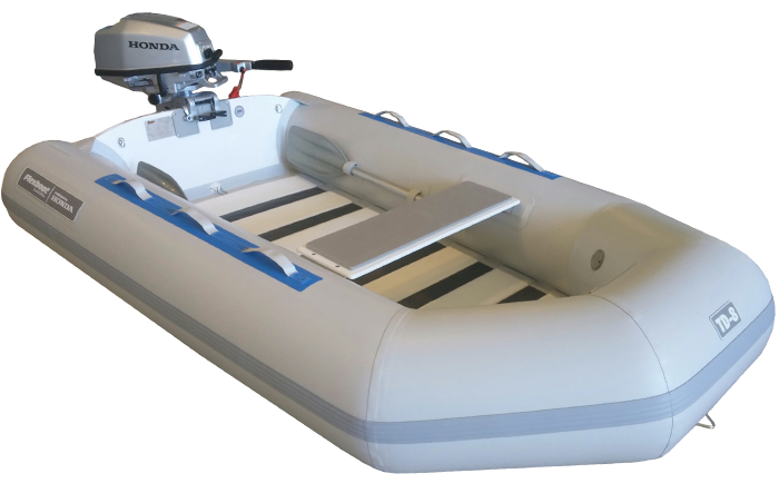 Flexboats TD8 is an economical alternative for a weekend adventurer. The TD8 is less expensive to operate and great for boat lovers on a budget. Flexboats are made of durable Hypalon (Orca 828) material. The TD8 is simple to roll up and stores in a small space. In addition to its own carrying case, the TD8 comes complete with 2 paddles, foot pump, air valve adapter, repair kit, owners manual and one bench seat. No assembly is required. Blow up the 2 chambers and you are ready for a day on the water. The 5HP Honda Outboard motor is the perfect companion for this 4 passenger inflatable boat. Motor sold separately.